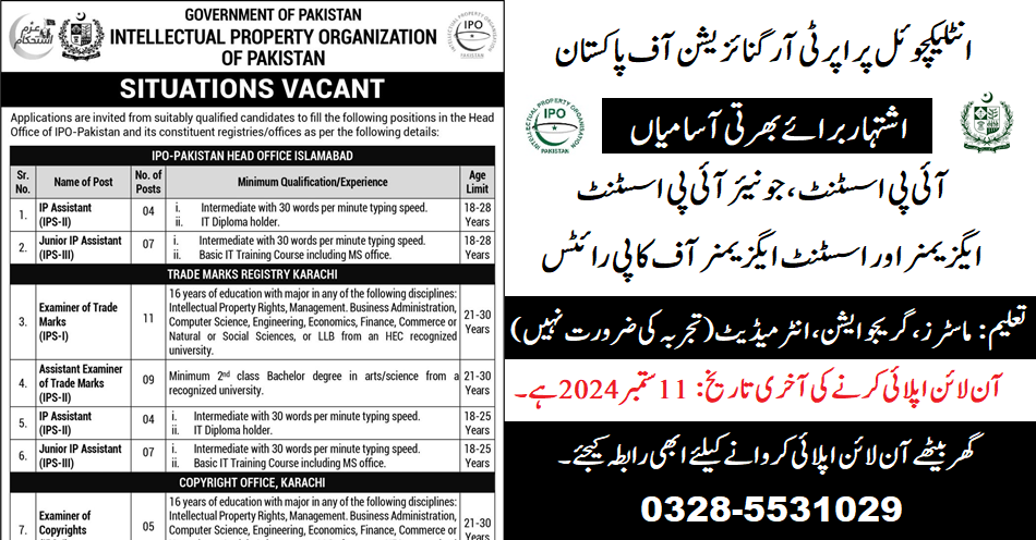 Intellectual Property Organisation of Pakistan (Latest Jobs September 2024)