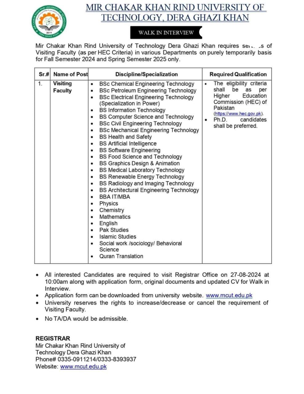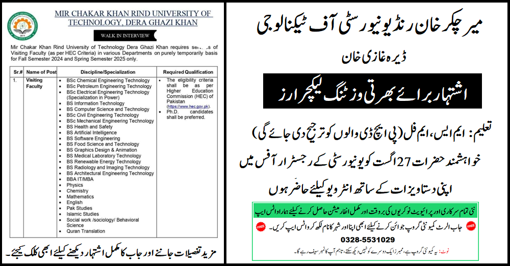 Mir Chakar Khan Rind University (Visiting Faculty Jobs 2024)