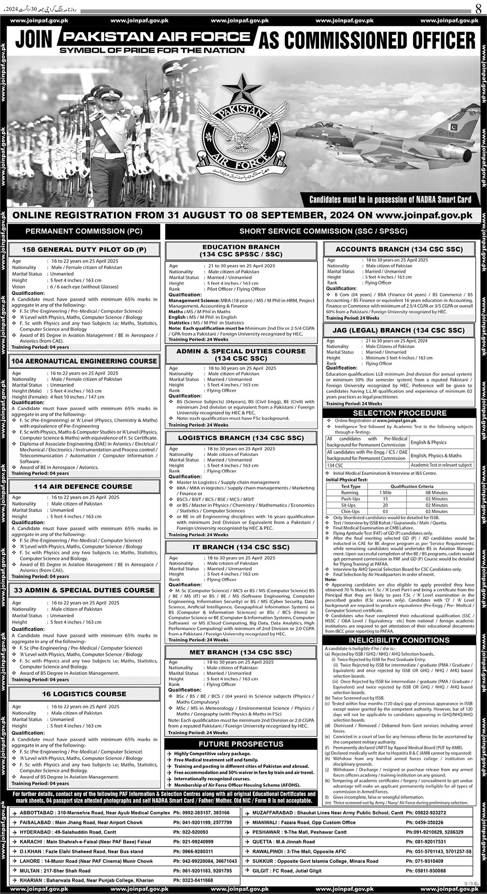 Join Pakistan Air Force As Commissioned Officer 2024