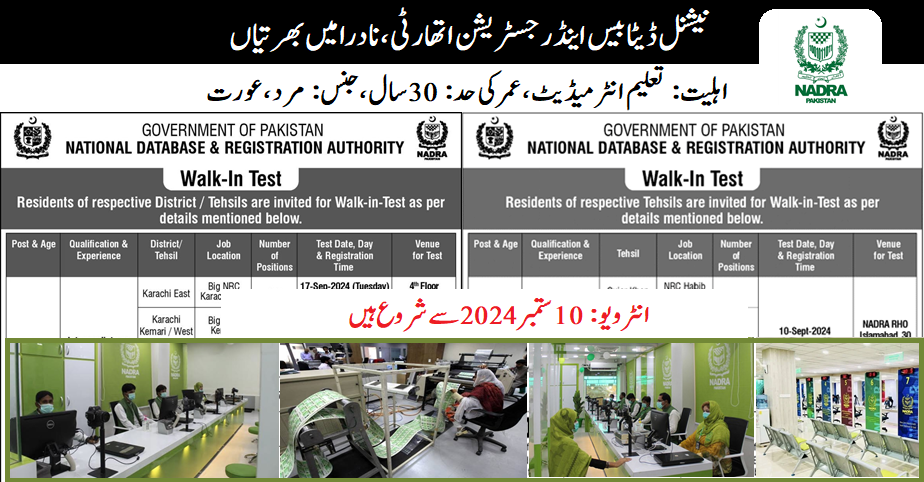 National Database and Registration Authority (NADRA Latest Jobs)