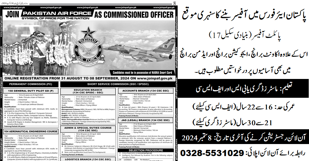 Pakistan Air Force PAF Commissioned Officer Jobs 2024