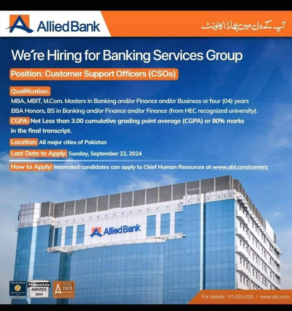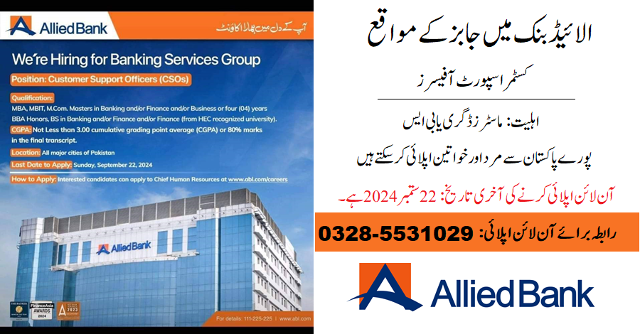 Allied Bank Careers Customer Support Officers (CSOs)