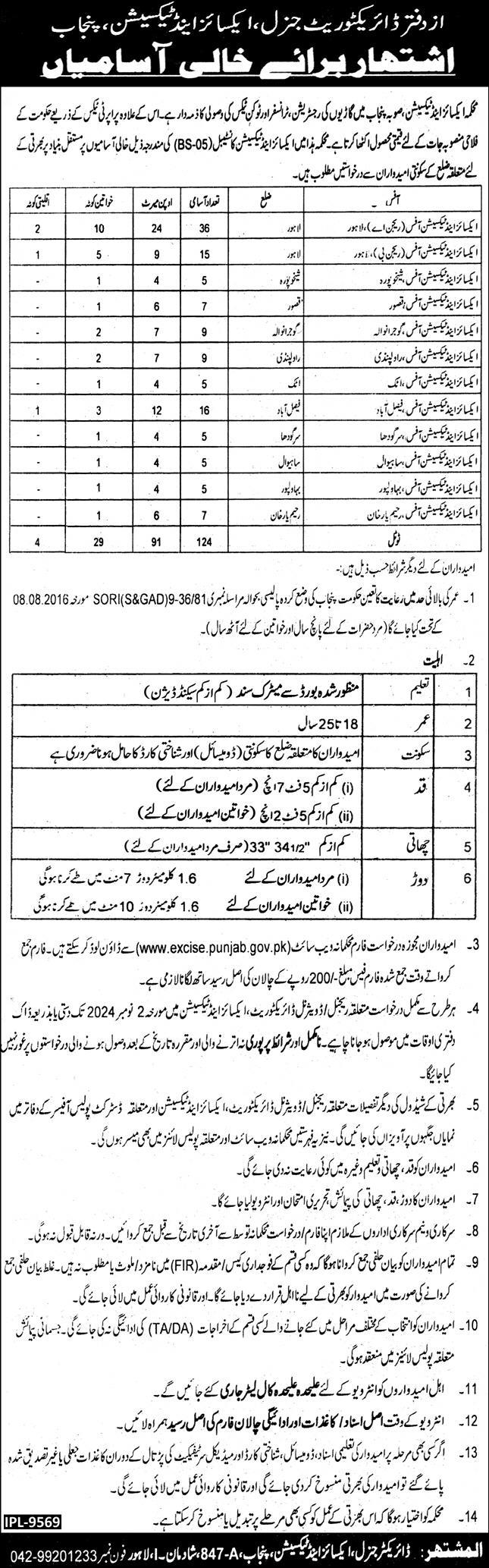 Excise & Taxation Department Punjab (Constable Jobs BS-05) Latest 2024