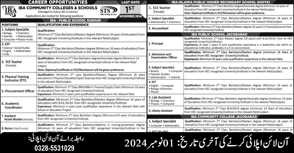 IBA Community Colleges (Latest Jobs October 2024)