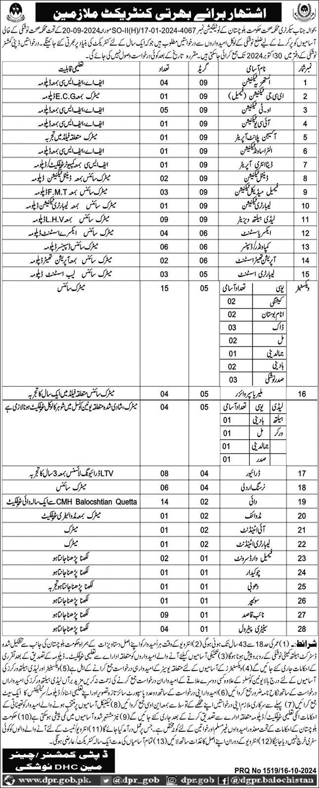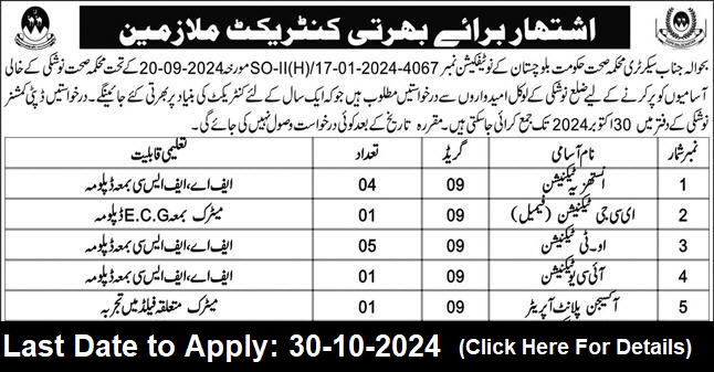 Health Department Government of Balochistan (Apply Now)