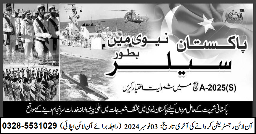 Join Pak Navy As Sailor Jobs Online Registration Form October 2024
