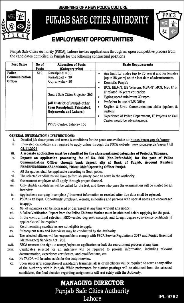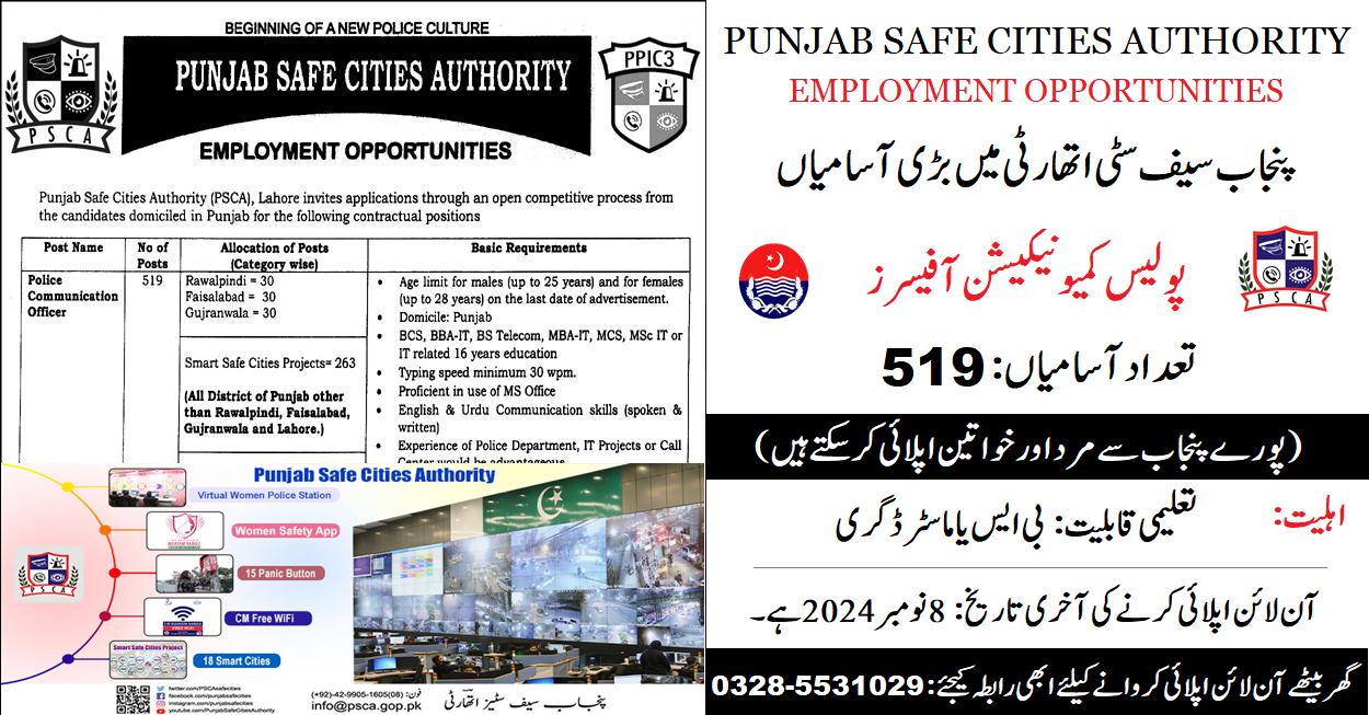 Punjab Safe Cities Authority Latest Jobs 2024 (Apply Now)