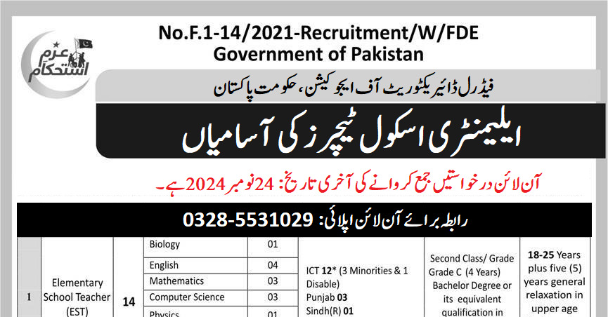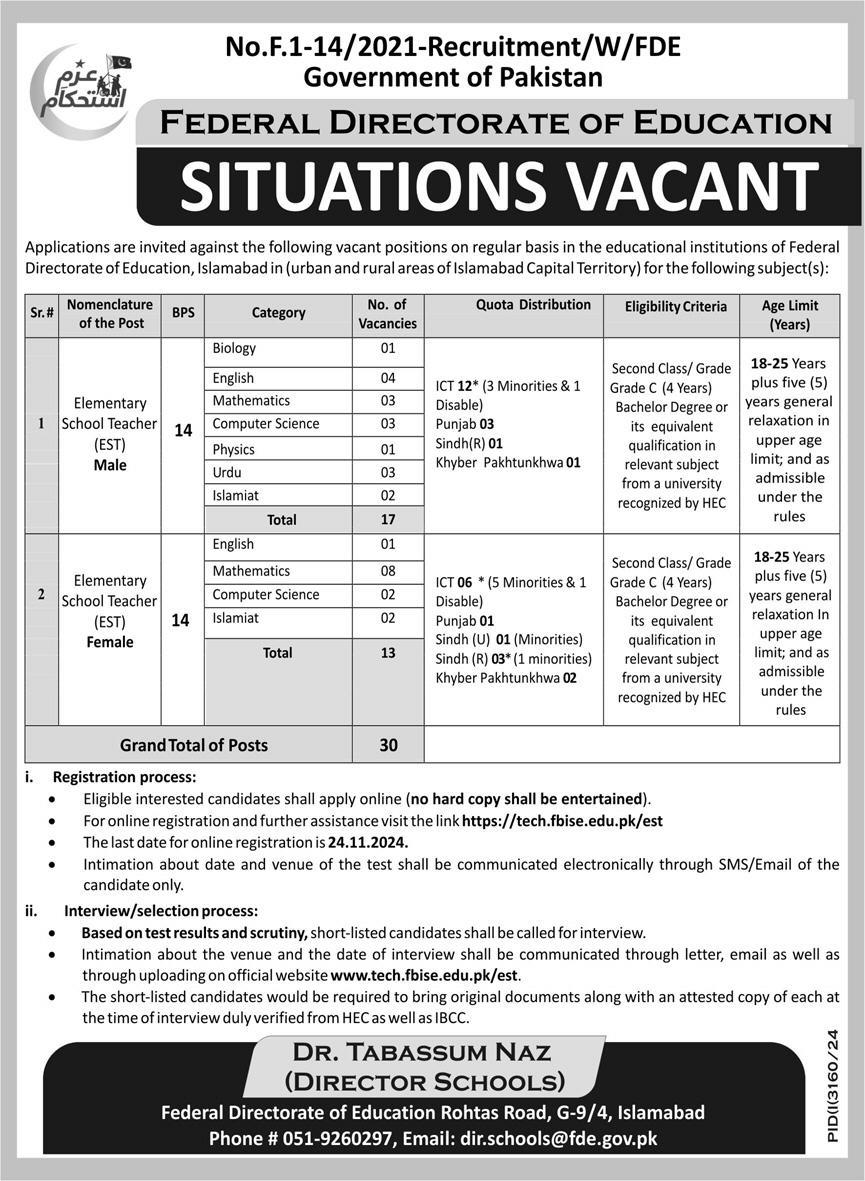 Federal Directorate of Education, Pakistan (Latest Jobs November 2024)