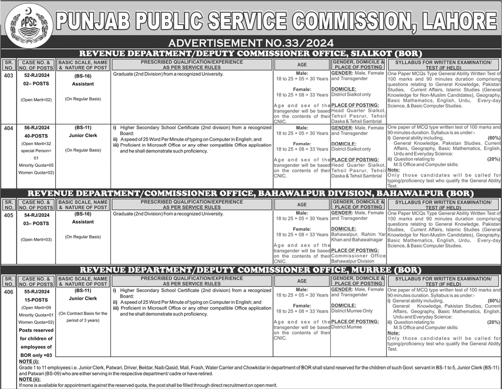 PPSC (Revenue Department Jobs December 2024)