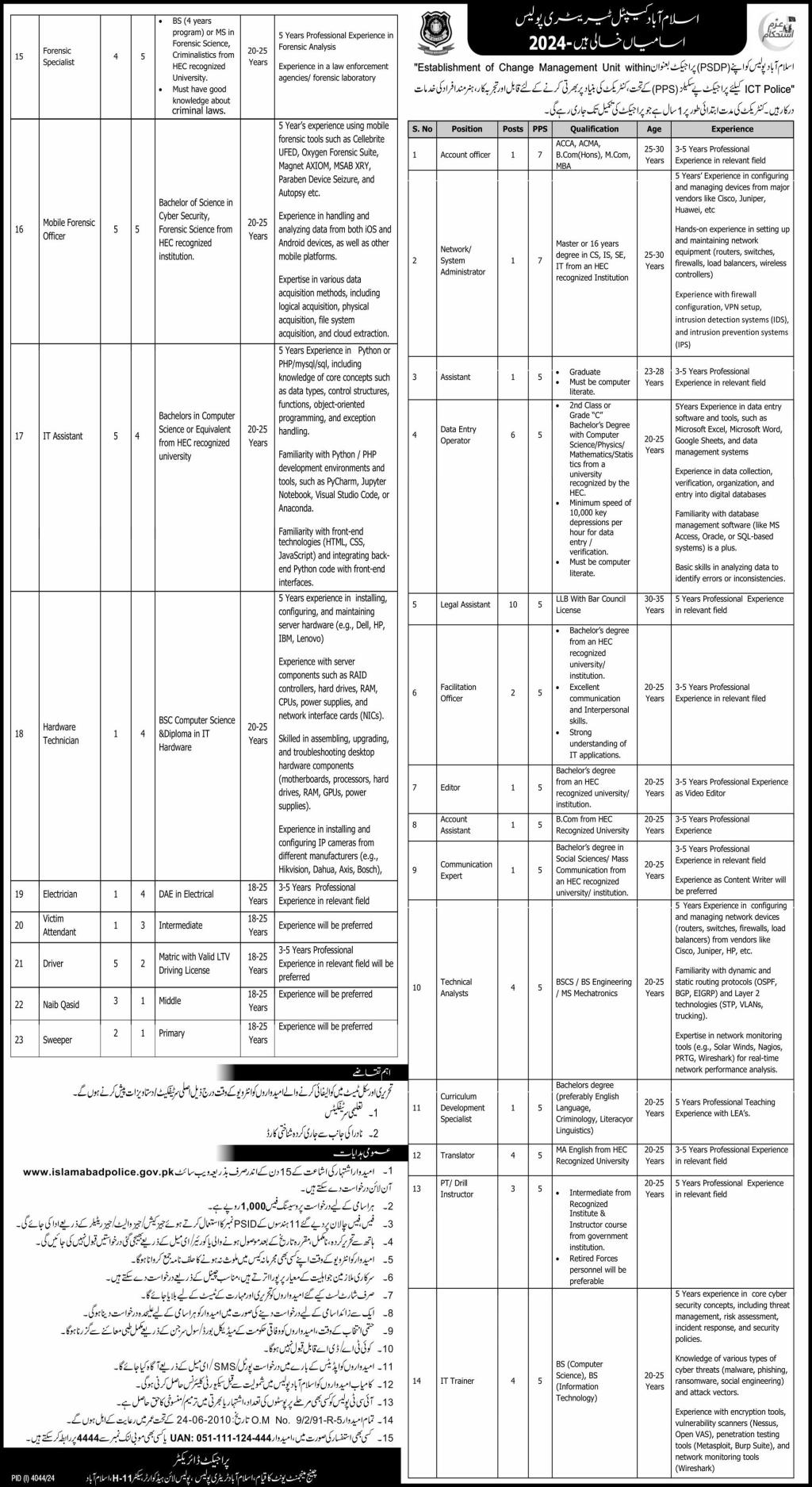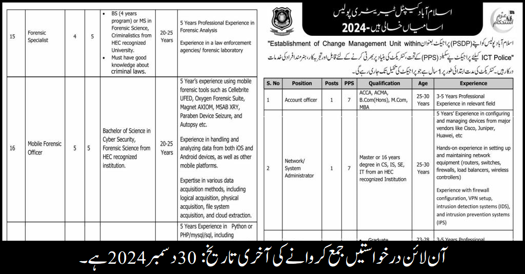 Islamabad Capital Territory Police (Latest Jobs December 2024)