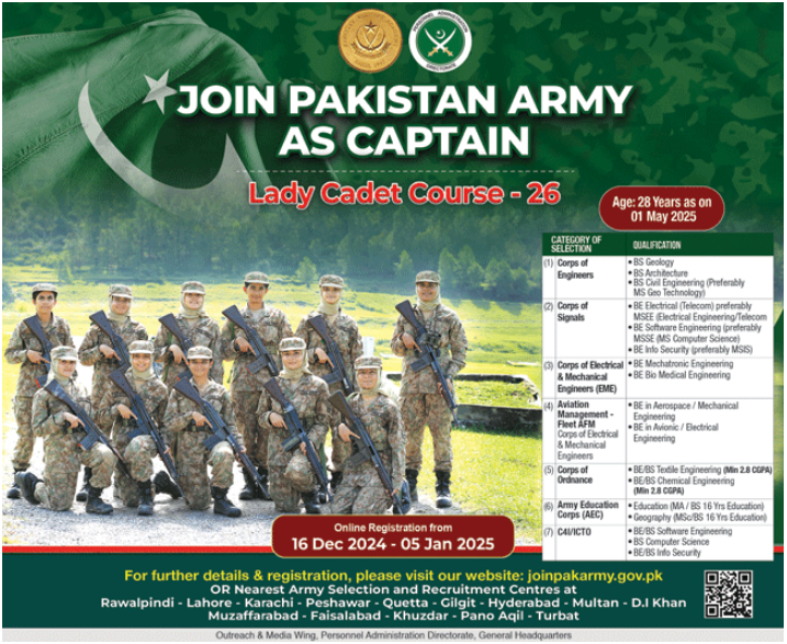 Join Pakistan Army As Captain (Lady Cadet Course - 25)
