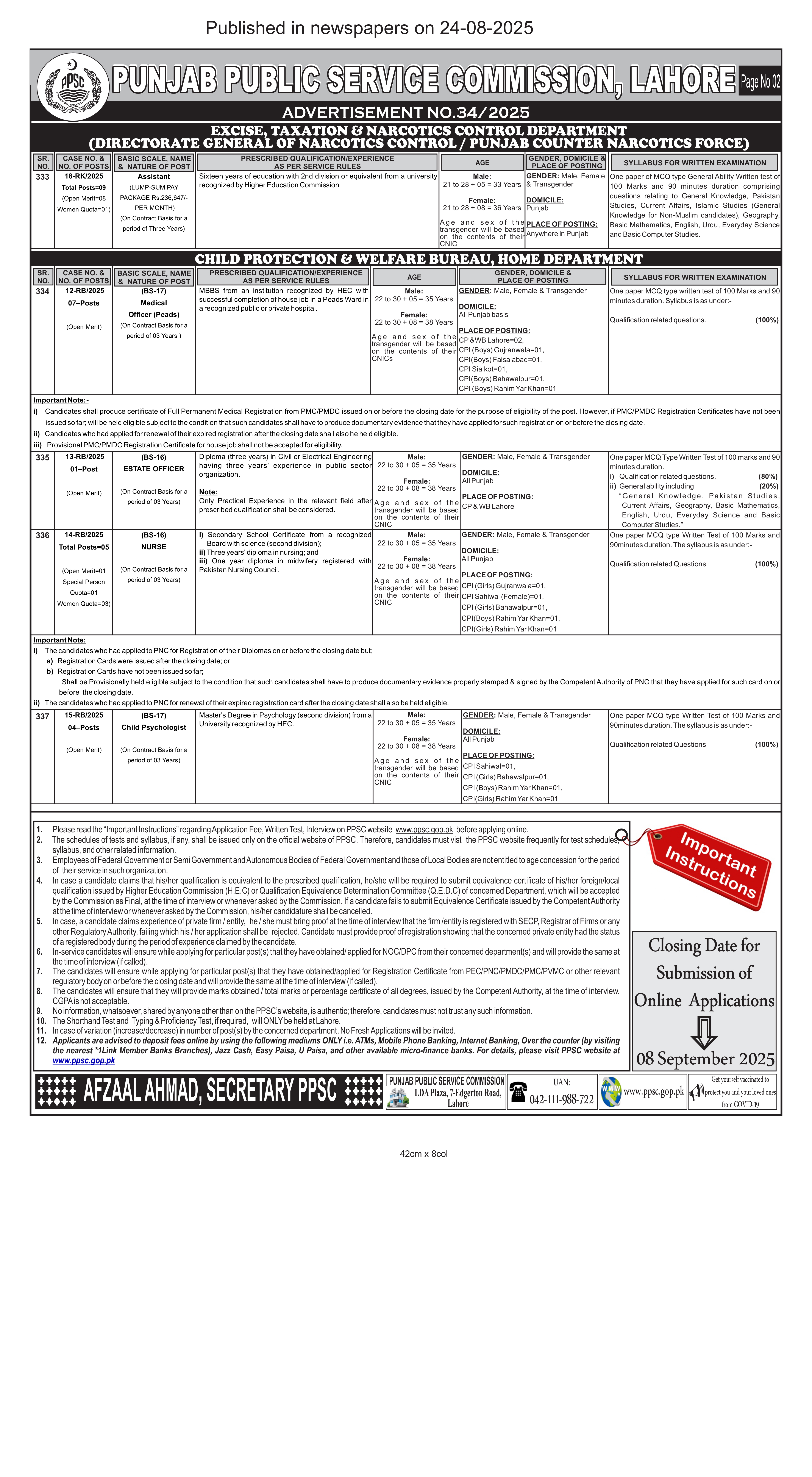 Closing Date for Submission of Online Applications: 08 September 2025