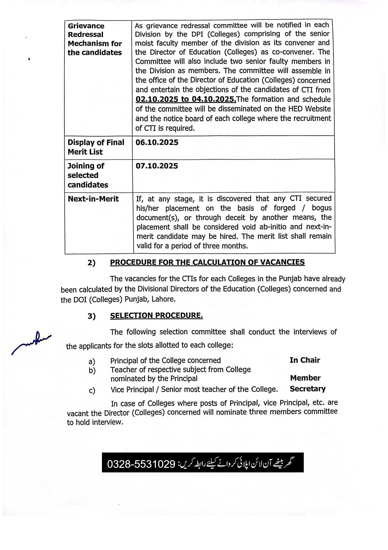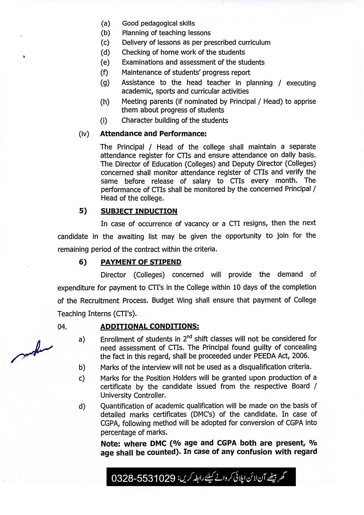 Joining Period: The College Teaching Interns (CTI) will have to join duties within seven (07) days after the issuance of offer of placement otherwise the offer shall stand withdrawn.